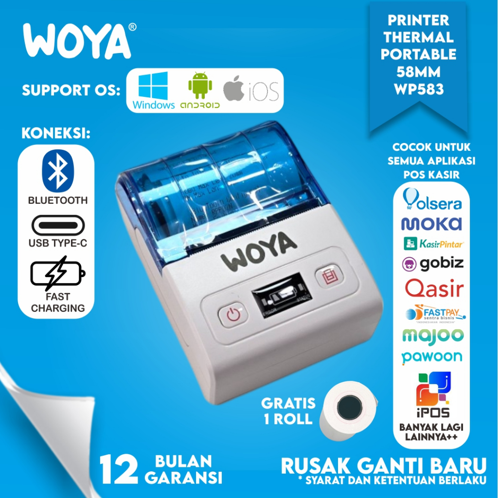 WOYA PRINTER BLUETOOTH MINI THERMAL PORTABLE 58MM WOYA WP583 RPP02 58MM ALAMAT - PRINTER KASIR