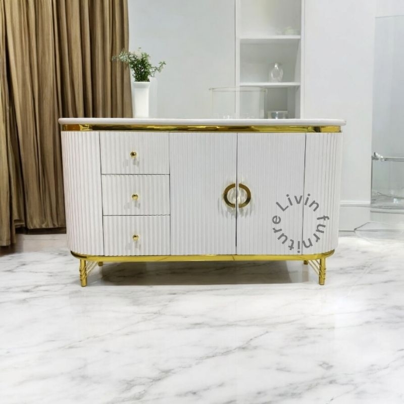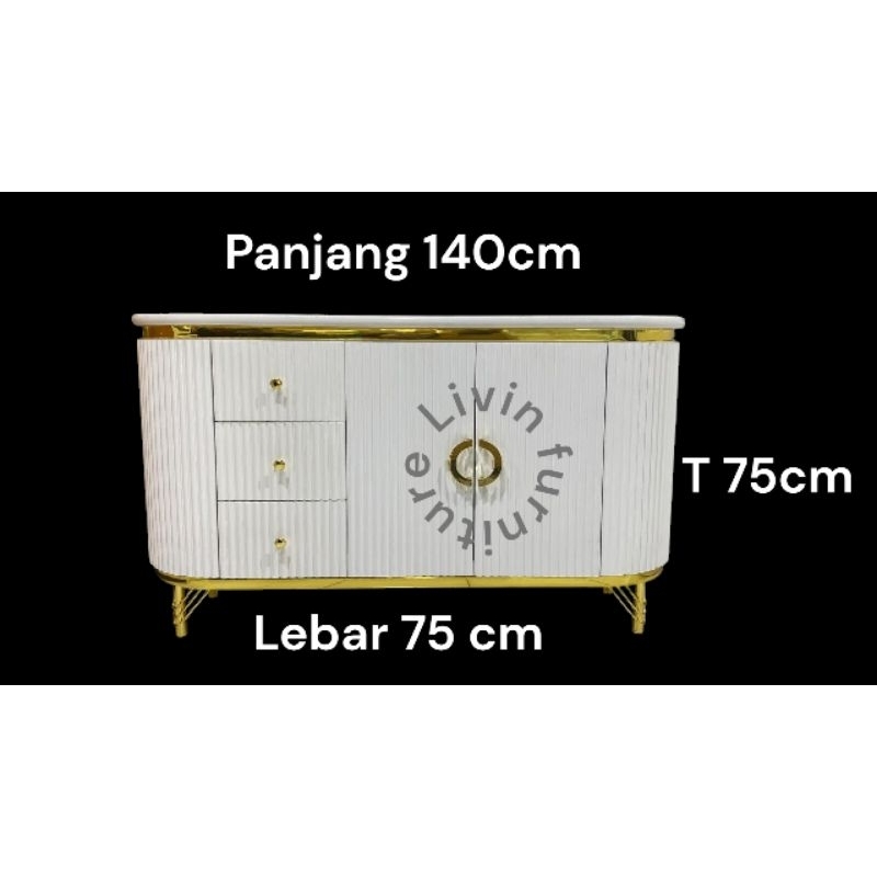 bufet tv minimalis Bufet TV Oval 140 Cm Putih Mewah