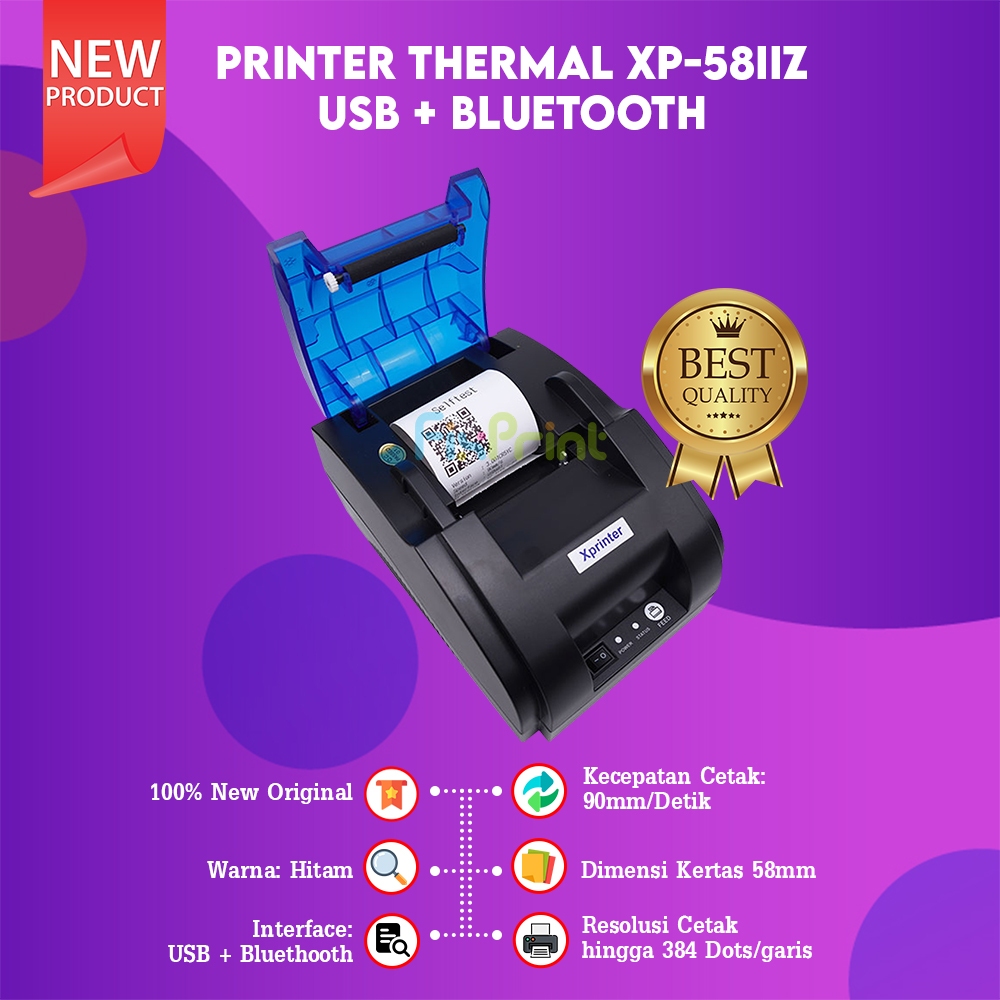 FixPrint Printer Thermal Kasir 58mm xantri BT-58D Black / White xprinter XP58IIZ XP-58IIZ XP58 Bluetooth IWare C-5813 /