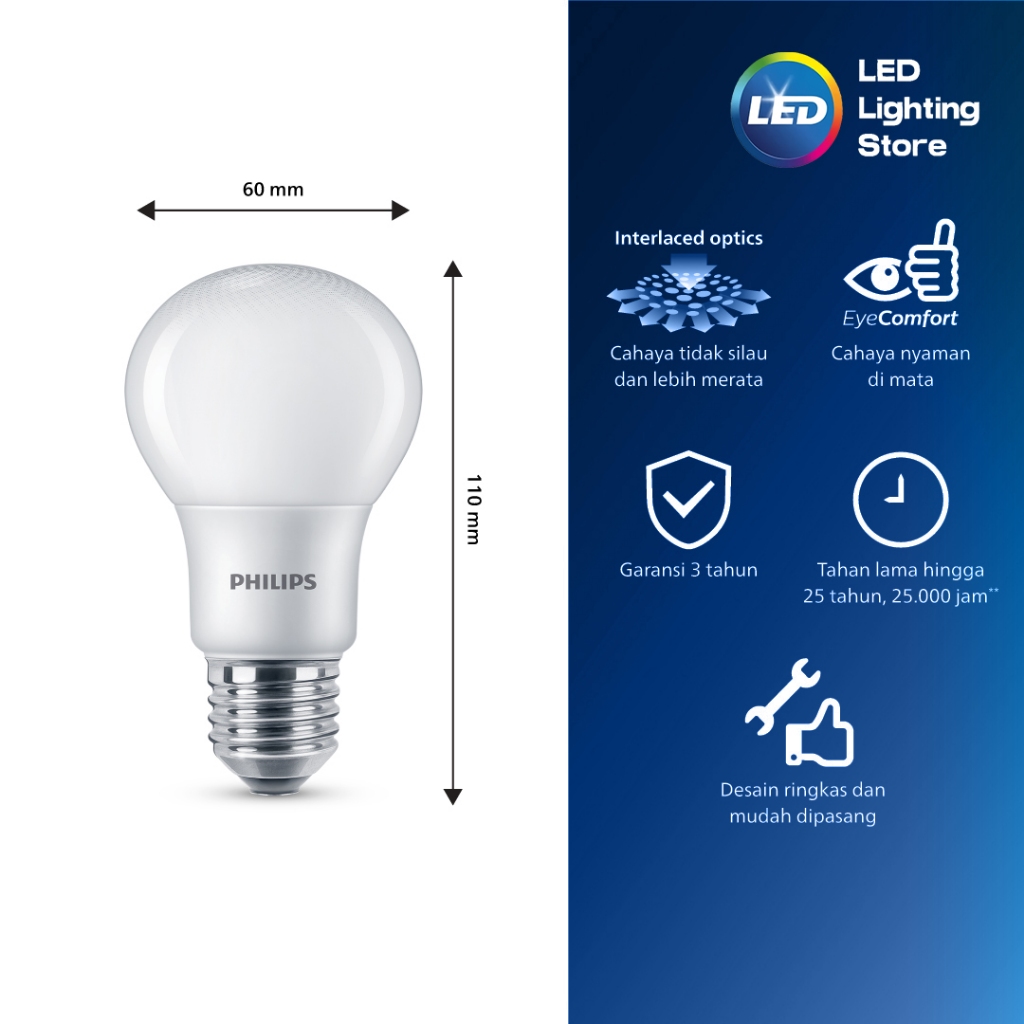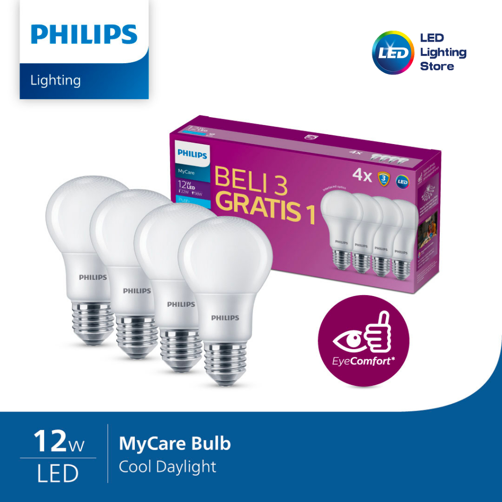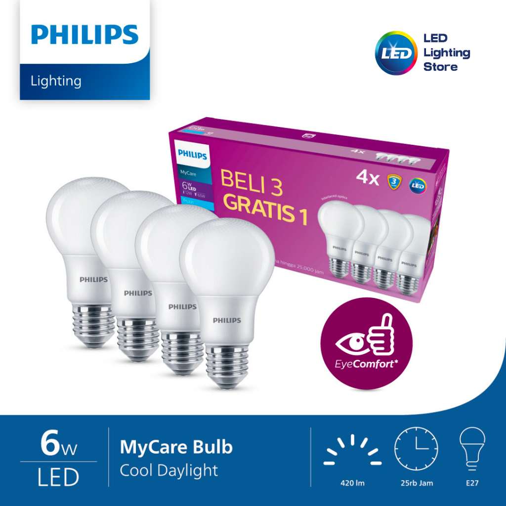 Promo Beli 3 Gratis 1 Lampu Bohlam Philips LED Bulb 4W 6W 8W 10W 12W 14.5W Watt Multipack MyCare - Cahaya Putih (6500K Cool DayLight)