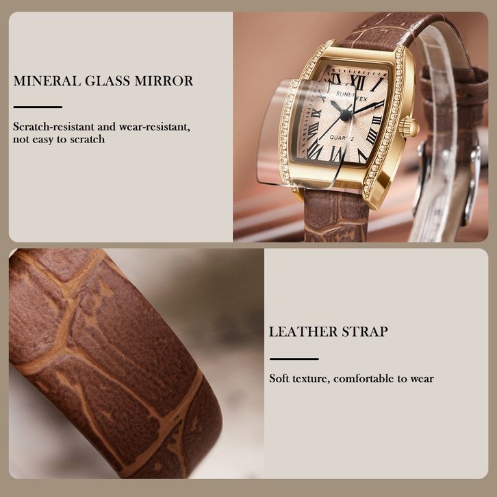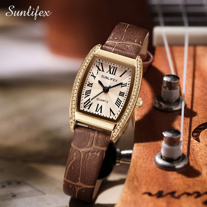 Sunlifex Jam Tangan Wanita Original 6010 Korea Antik Tali Kulit Anggun Santai Jam Tangan Cewek