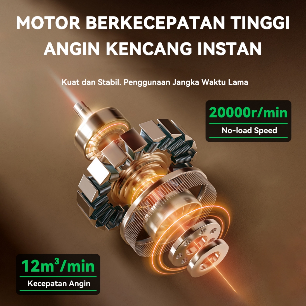 ISKU Blower Listrik 650W Tanpa Kabel Electric Blower Industr Turbo Boost, Kecepatan Tinggi 20000r/min, Daya Kuat, Bersih