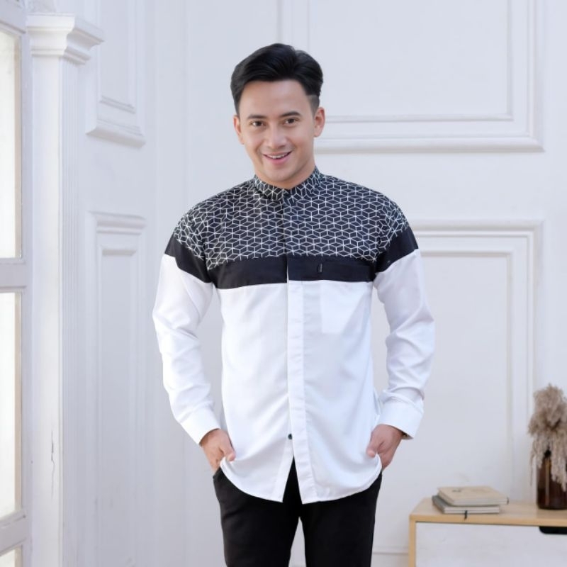Baju Koko Lengan Panjang Dewasa Kombinasi Batik Koko Azzahir