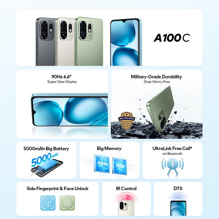 Itel A100C 4/64GB Titanium Gold, Itel A100C 4/64GB Silk Green, Itel A100C 4/64GB Pure Black, Itel A100C 4/64GB Blaze Blue