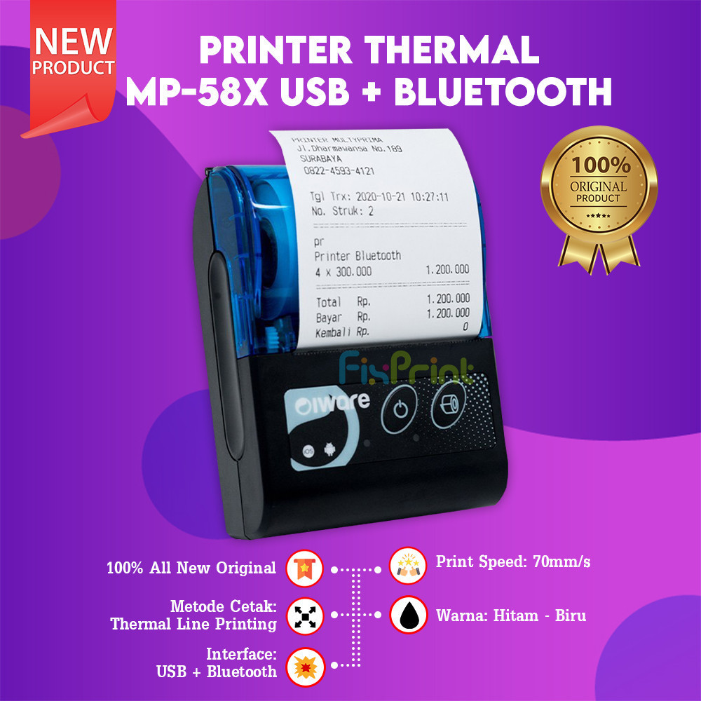 FixPrint Printer Thermal USB Bluetooth Xantri BT58D Black / White Iware C58BT SUPPORT MOKA POS PRINTER KASIR Iware BT-58