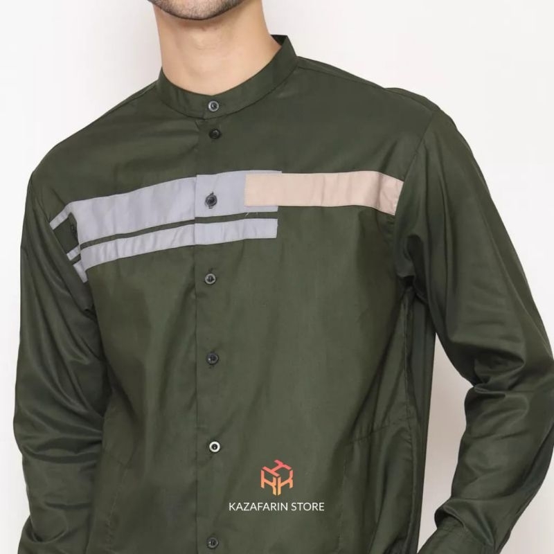 Baju Koko Pria Lengan Panjang Motif Yordan Kombinasi Warna