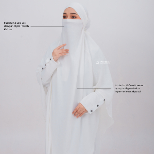 Abaya Habsya (Putih) Set French Khimar Instant / Abaya Umroh Set / Gamis Haji & Umroh