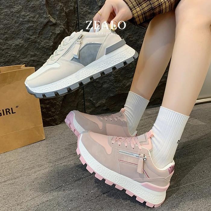 ZEALO 420 SEPATU SNEAKERS WANITA SOL TEBAL CASUAL KEKINIAN | SEPATU RUNNING HARIAN MODEL KOREA - GRAY, 37