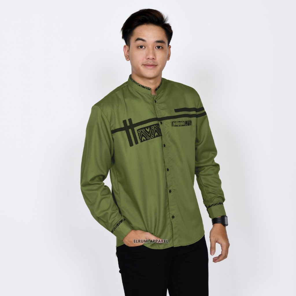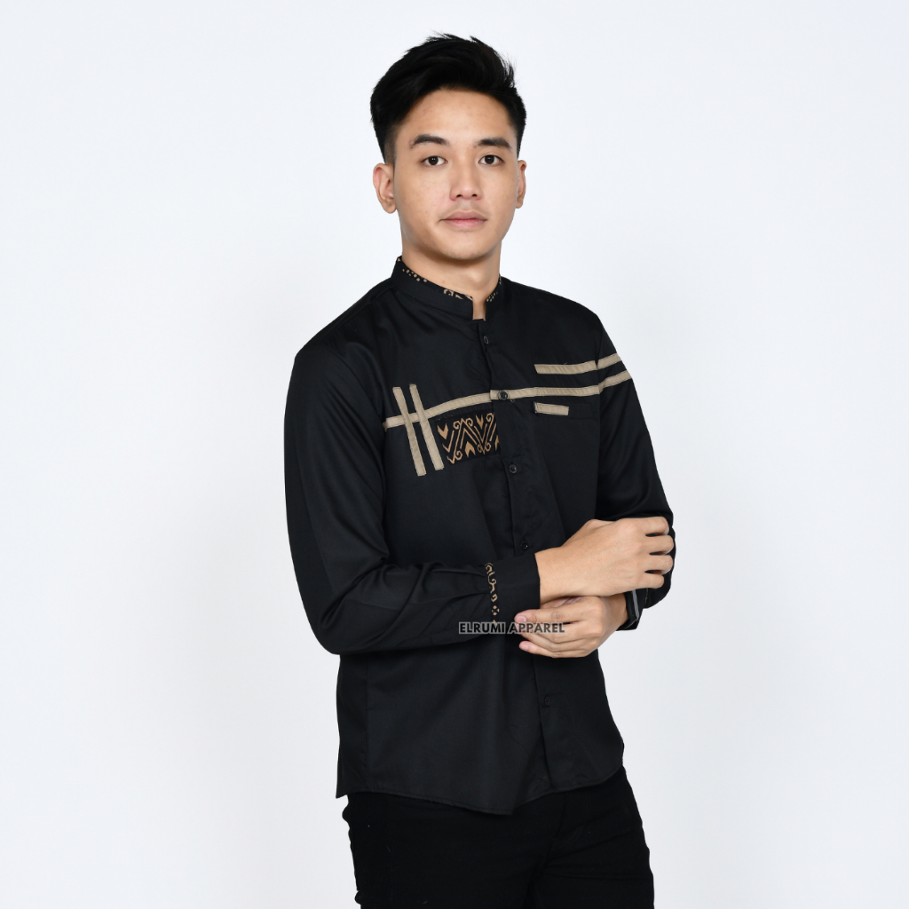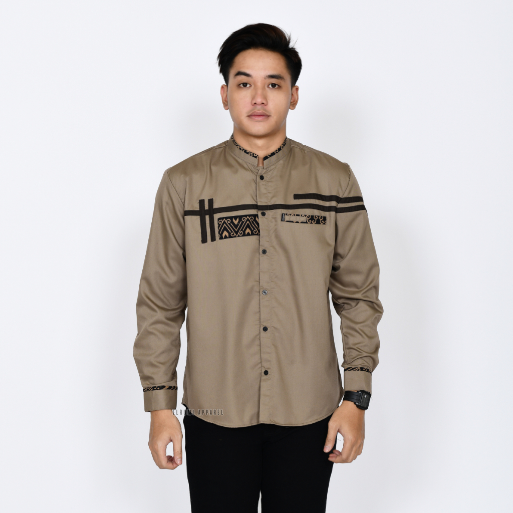 Baju Koko Pria Lengan Panjang Coklat Batik Slim Fit Motif Zoled Original Elrumi