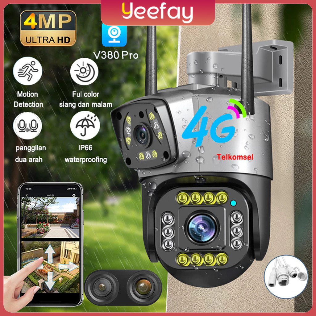 V380 Pro CCTV WiFi 4K 8MP 4G SIM Kamera PTZ IP66 Tahan Air Outdoor Lensa Ganda di Luar Ruangan