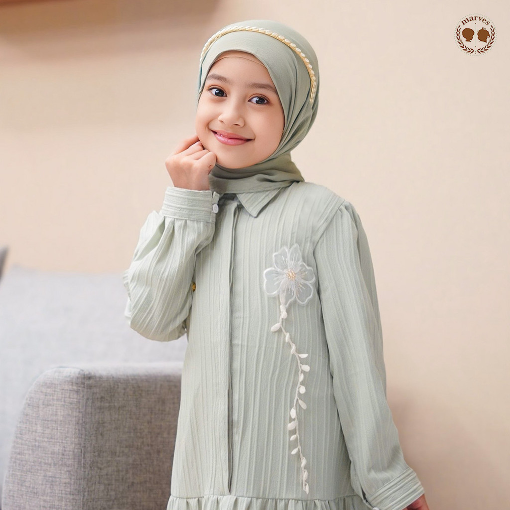 gamis anak perempuan MARVES Tsalisa Gamis Baju Muslim Anak Perempuan Bahan Crinkle Elora Usia 1 hingga 14 Tahun