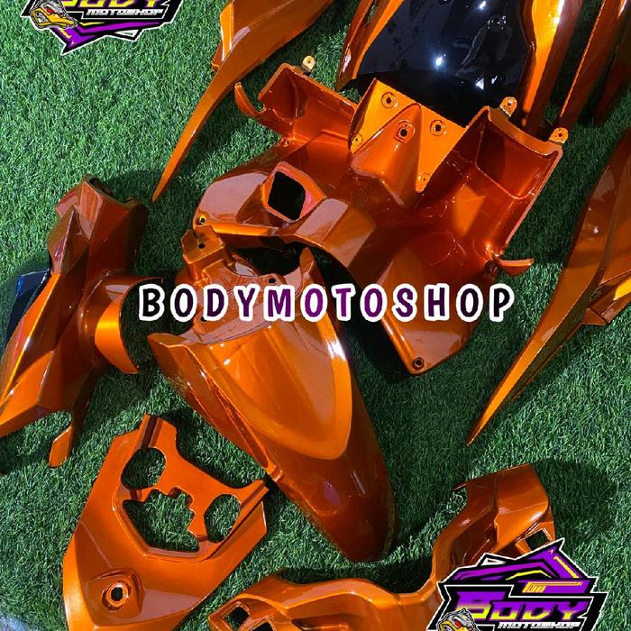 COVER FULLSET BODY HALUS HONDA VARIO KZR WARNA ORANGE CANDY SANKIS GELAP MIX HITAM MOTORCYCLE - HITAM, BODI HALUS SAJA