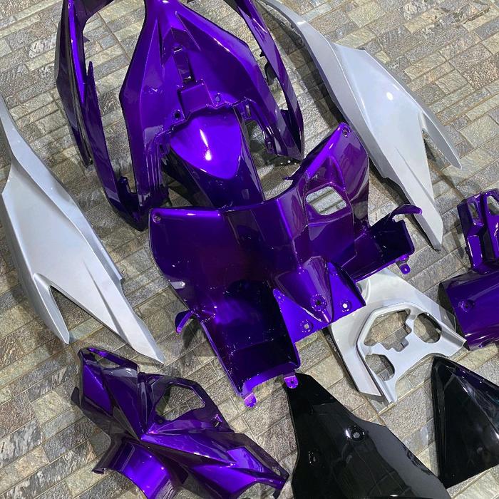 COVER FULLSET BODY HALUS HONDA VARIO KZR 125 BOHLAM WARNA UNGU CANDY MIX SILVER VIETNAM STYLE MOTORCYCLE KENDARAAN - FULL HITAM
