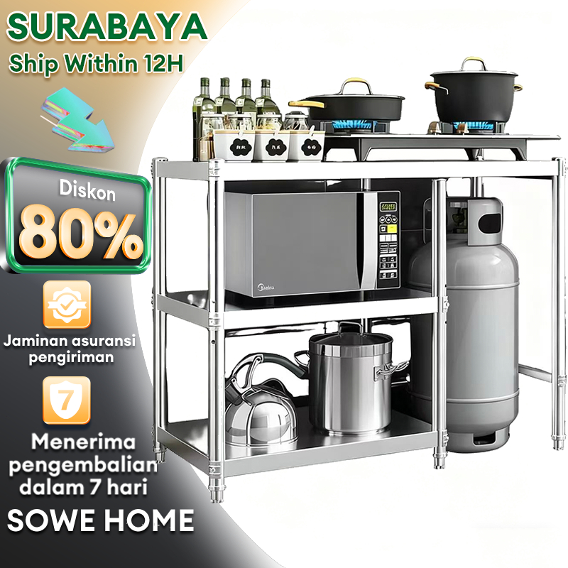 Meja Kompor Stainless Steel Rak Dapur Susun Stainless Steel Rak Panci Susun Dapur