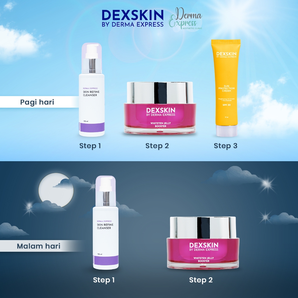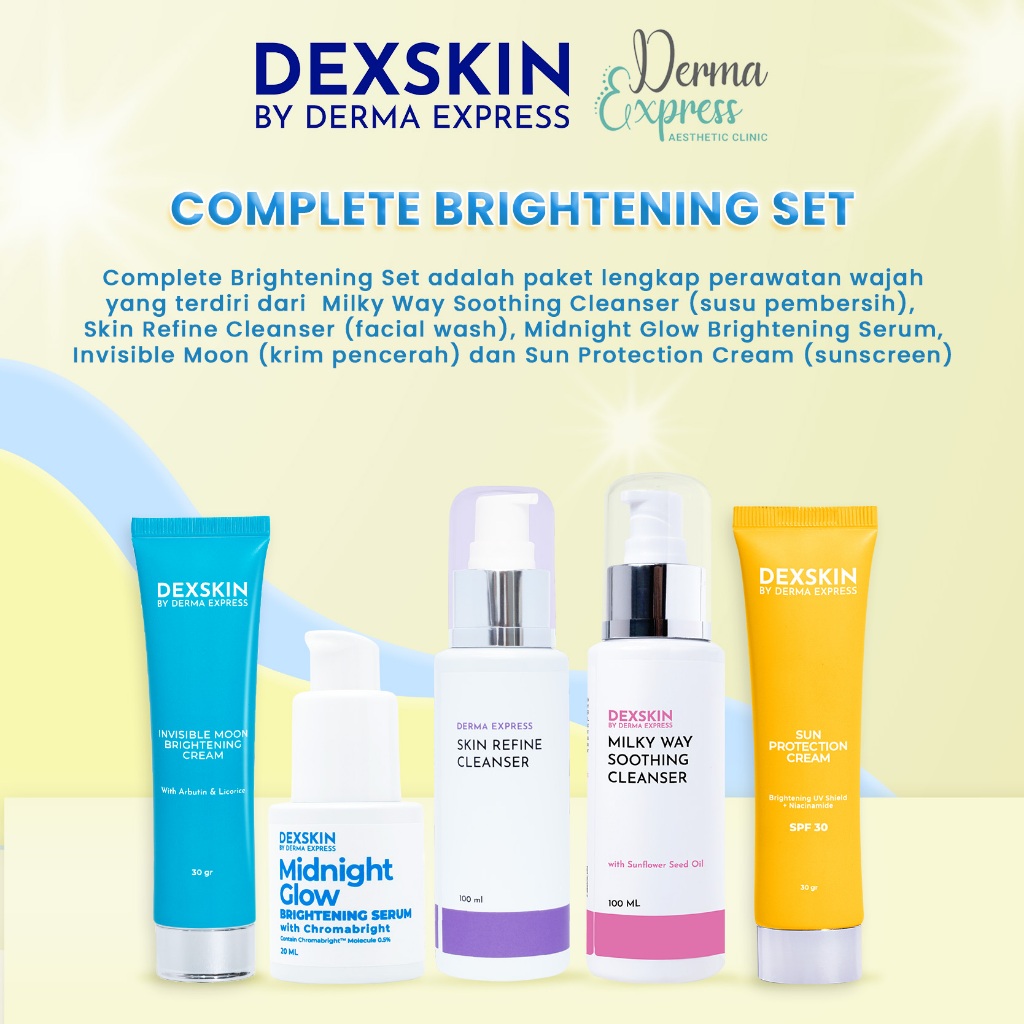 SKINCARE DEXSKIN COMPLETE BRIGHTENING SET 5 PCS PACKAGE PERAWATAN KULIT CERAH BEBAS JERAWAT JUGA FLEK DAN KERUTAN WAJAH