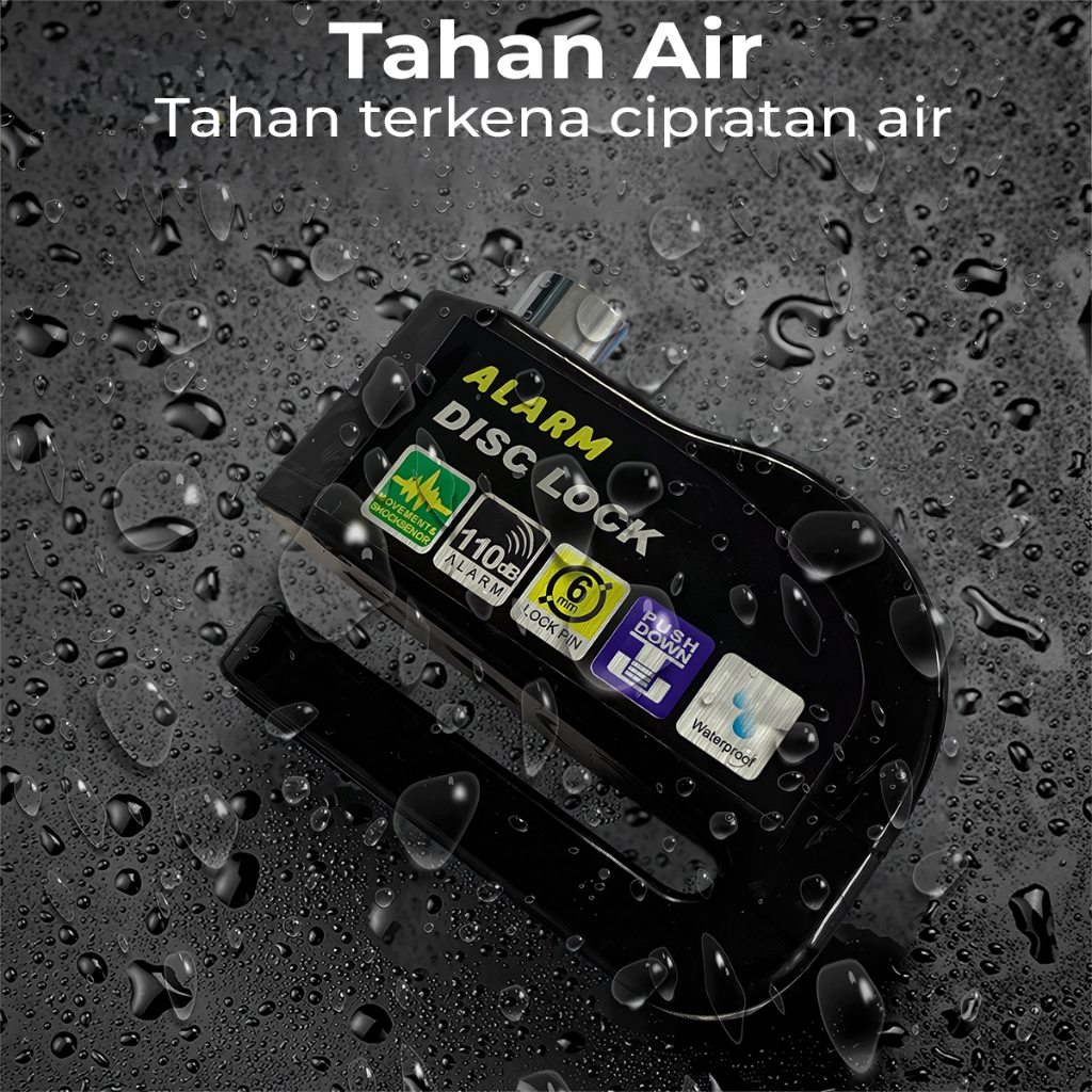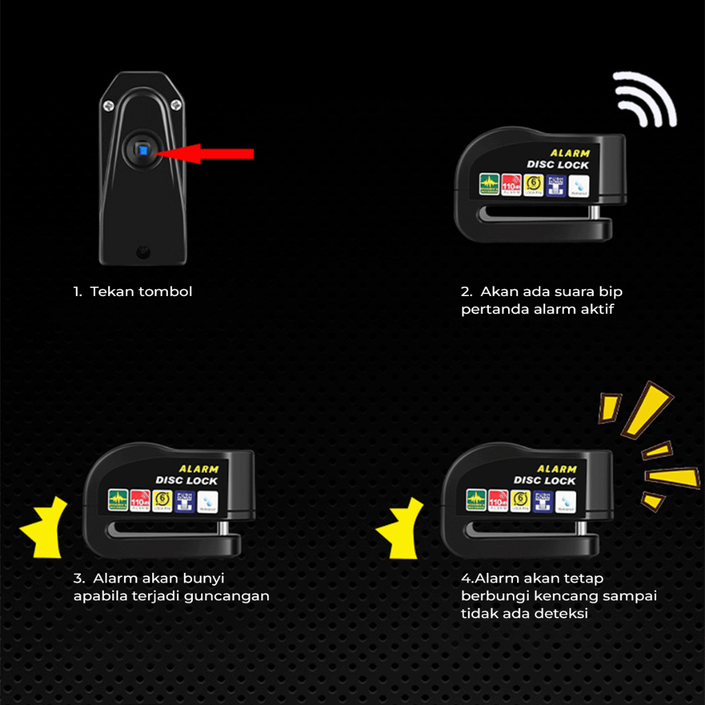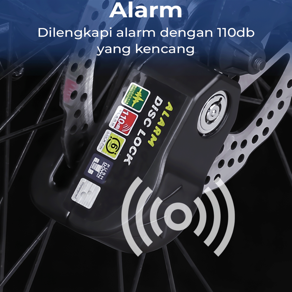 Gembok Alarm Motor Cakram 110dB Kuat Tahan Air Anti Maling Disc Lock Motor Aman
