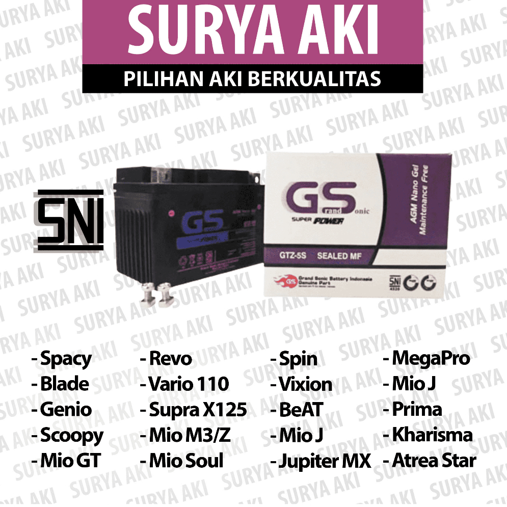Aki Motor GTZ5S MF Aki Kering Yamaha Fino Vario 110 Honda Beat Supra X 125 Scoopy Spacy Blade Revo New Mega Pro - Free Bubble Warp Dus