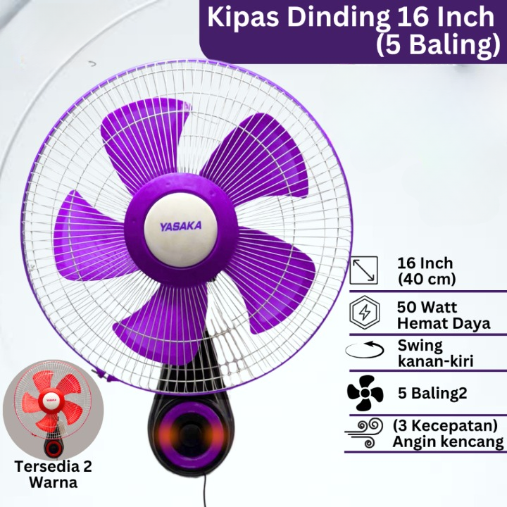 Kipas Angin Dinding 16 Inch Hemat Daya 5 Baling Angin Kencang