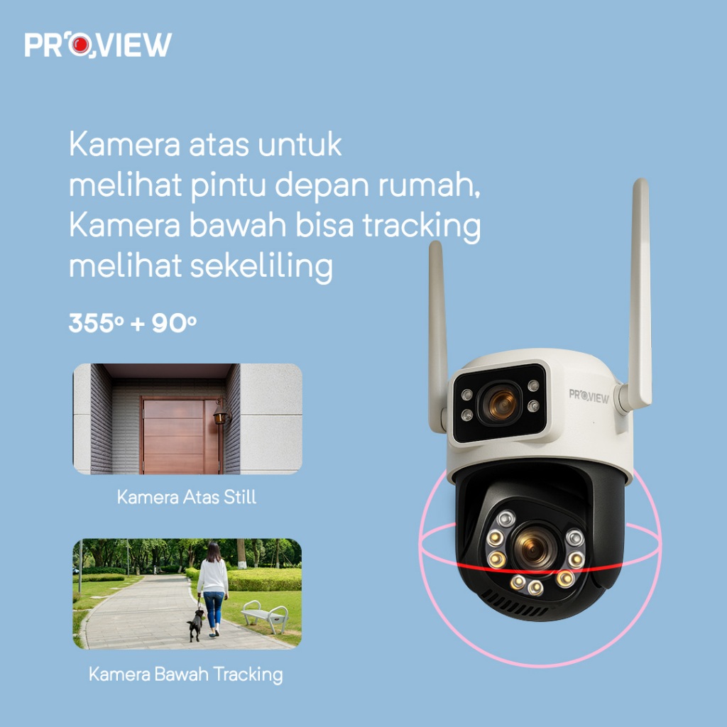 PROVIEW CCTV Wifi Outdoor PTZ Dual Lens 2 Kamera 355° 6MP IP67 Night Vision Motion Detection
