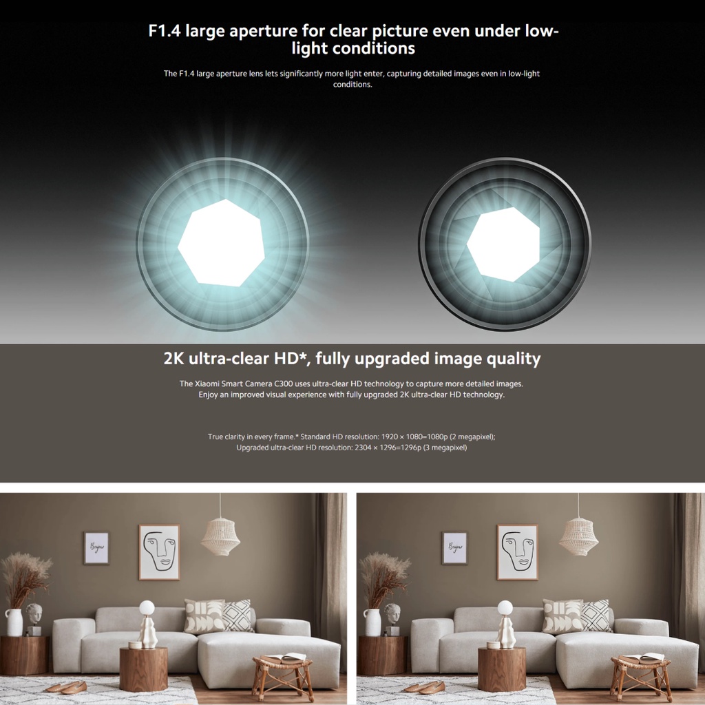 Xiaomi Mi 360° Home Security Camera 2K C300 CCTV Smart Camera C300 2K Ultraclear HD 3MP F1.4 AI Human Detection Garansi Resmi