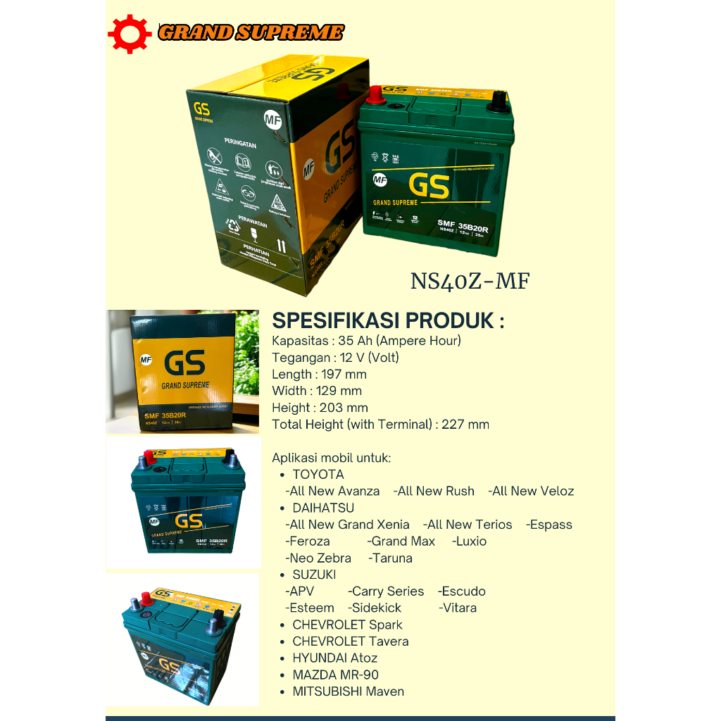 AKI MOBIL GS GRAND SUPREME NS40Z(R) 12V-35AH Avanza, Xenia, Rush, Grand Max, Carry