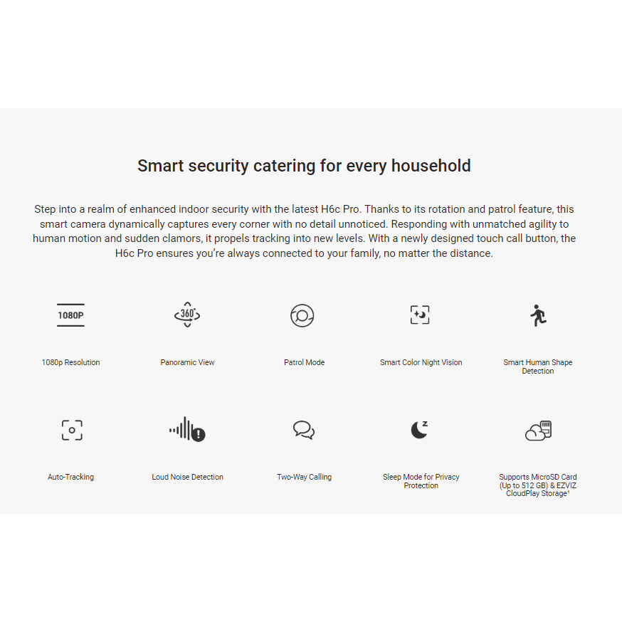 Ezviz H6c Pro 2MP Smart Wifi Pan Tilt IP Camera CCTV Indoor 1080p