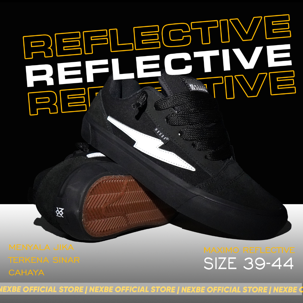 NEXBE - Maximo Full Black Reflective - White Sepatu Gemuk nyala Gendut Pria Wanita