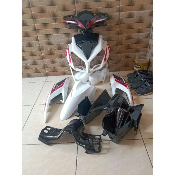 COVER BODY FULL SET HALUS KASAR MOTOR HONDA VARIO TECHNO 110 CBS KARBU PLUS STRIPING WARNA PUTIH - FULL BODY