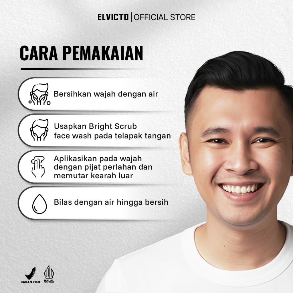 [Non Sls] Elvicto Bright Scrub Face Wash 100Gr |Bright Scrub Face Wash Micro Scrub Cerah Tak Berminyak Oil Control Face