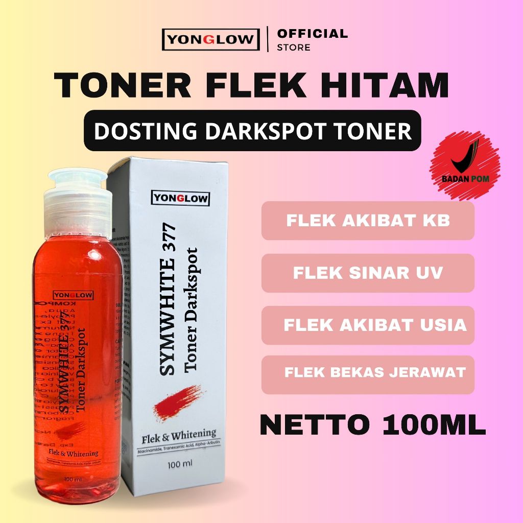 Yonglow Kemasan 100Ml Dosis Tinggi Toner Flek Symwhite 377 Bpom Penghilang Flek Noda Bintik Hitam Membandel Melasma Hipe