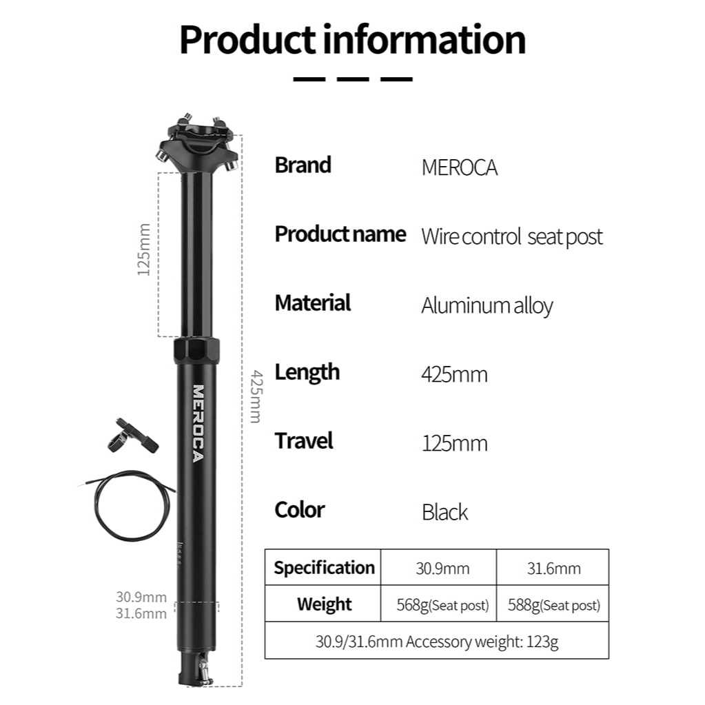 Meroca Dropper Adjustable Seatpost Inner Cable Kabel Dalam T125 diameter 30.9 31.6 travel 125 mm