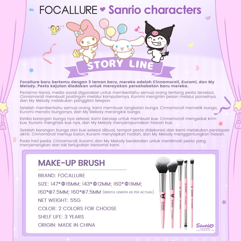 Focallure X Sanrio Fluffy Makeup Brush Set 5Pcs #Dressupslay