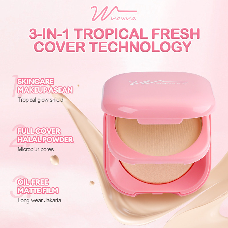 [Free Gift] Windwind Perfect Blurring Powder Foundation Make Up Cushion Bedak Matte Concealer Waterproof Setting Two Way