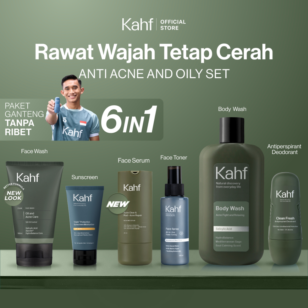 [Kahf Bundle 6In1 Paket Ganteng Tanpa Ribet] Paket Complete Set (Face Wash + Toner + Serum + Sunscreen Moisturizer + Bod