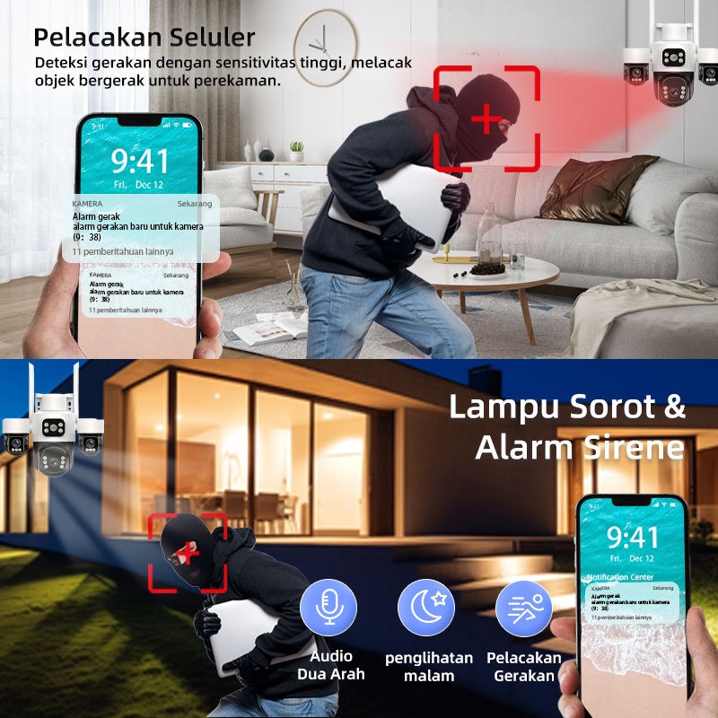 Franwell CCTV WiFi 3 Lensa Outdoor Gambar Jelas Siang Malam Tahan Hujan Mudah Pasang HP Pantau