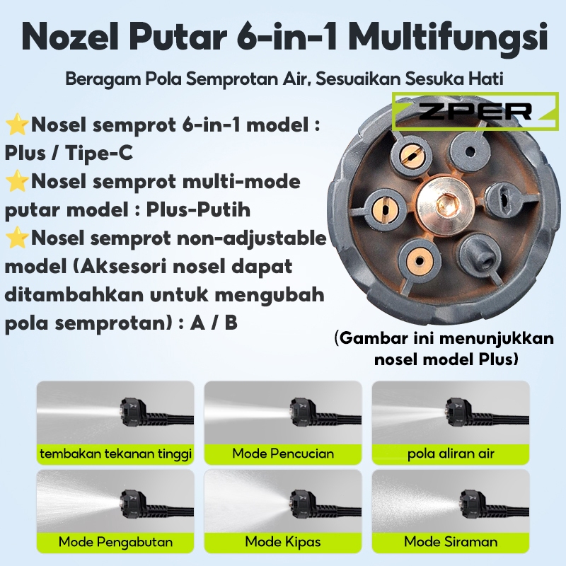 ZPER Alat Cuci Mobil Air Tekanan Tinggi Alat Portable Nirkabel Untuk Nyuci Mesin Cuci Lithium ZP005