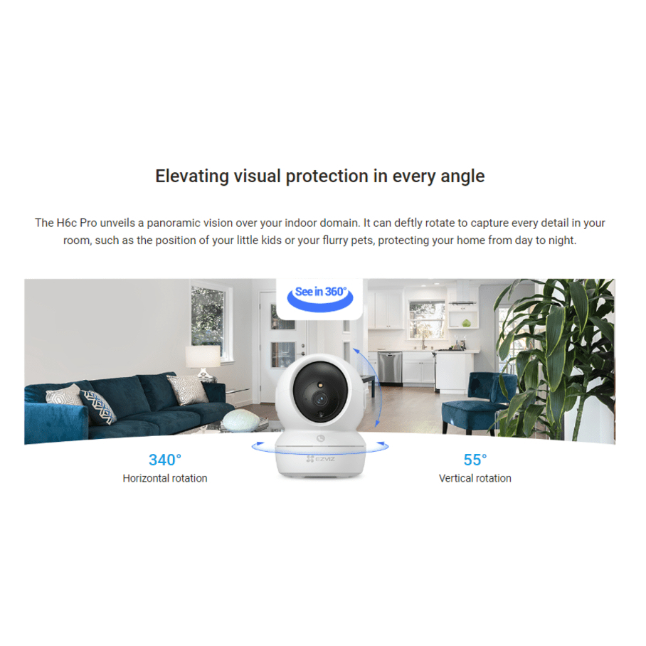 Ezviz H6c Pro 2MP Smart Home Wifi Pan Tilt IP Camera CCTV Indoor 1080p wSD Card 3264128GB