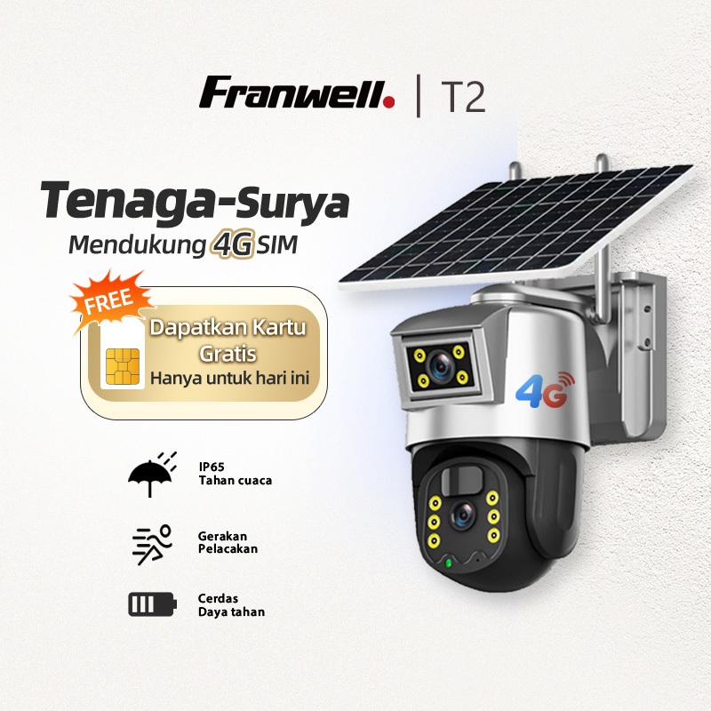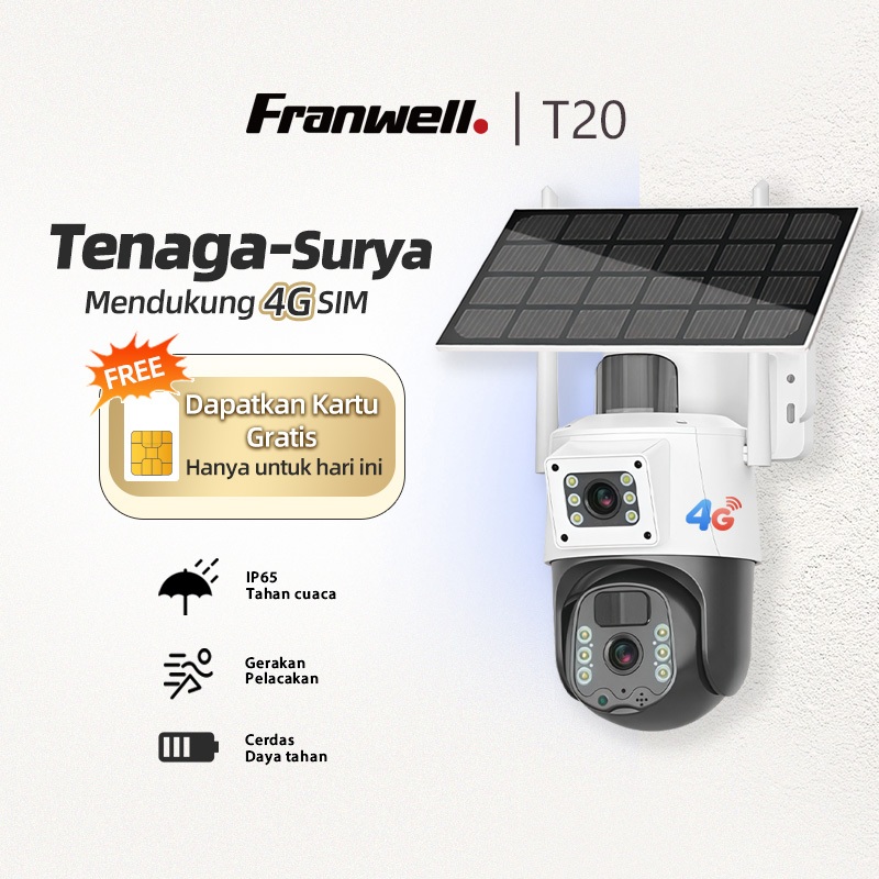 Franwell 4G Solar CCTV Dual Lens Outdoor Gratis SIM Tanpa WiFi Night Vision Audio 2 Arah Tahan Hujan