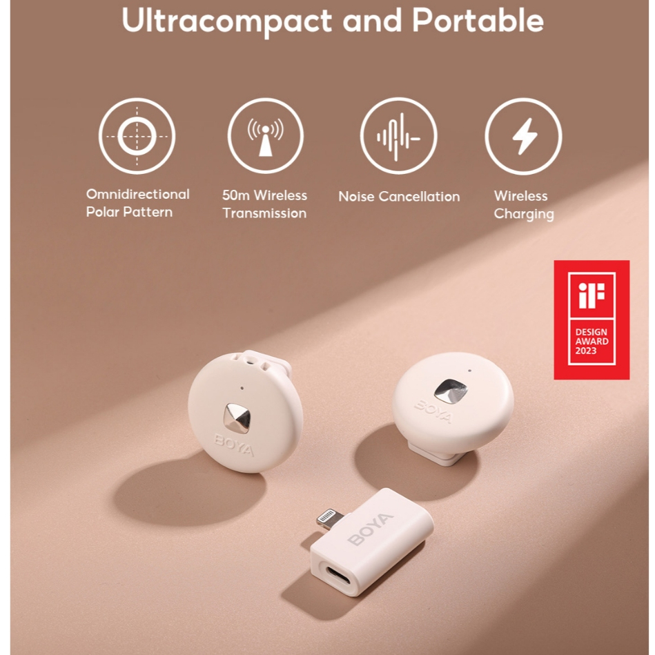 BOYA OMIC D/U Series Sistem Mikrofon Nirkabel Dua Saluran 2.4GHz Ultracompact Koneksi Port IOS MFi Lightning dan Port Type C dilengkapi Casing Pengisi
