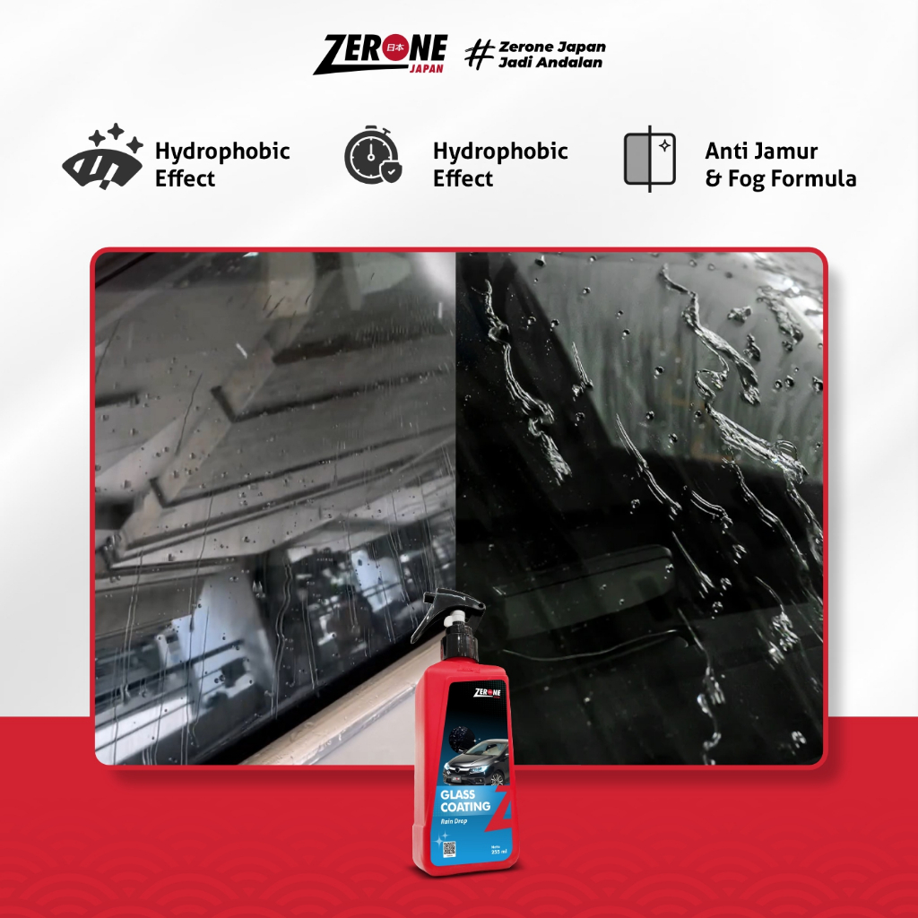 Zerone Japan Glass Coating Pelindung Kaca Mobil Hydrophobic Effect Anti Air Anti Jamur Tahan 2 Bulan