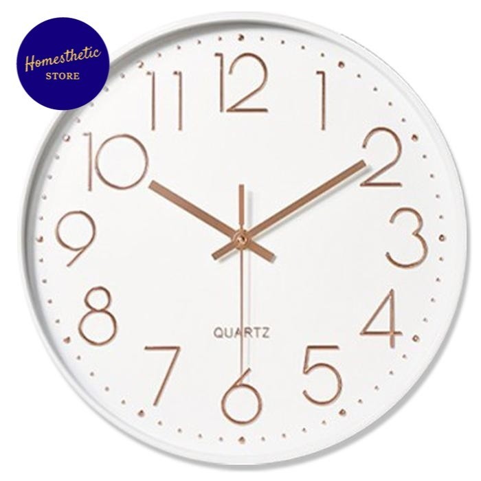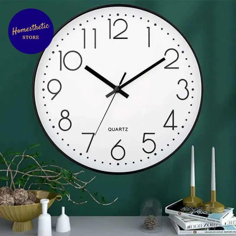 Jam Dinding Bulat Minimalis Modern Estetik Tanpa Suara Sweep Silent Movement 30 cm Desain Nordic untuk Kamar Ruang Tamu