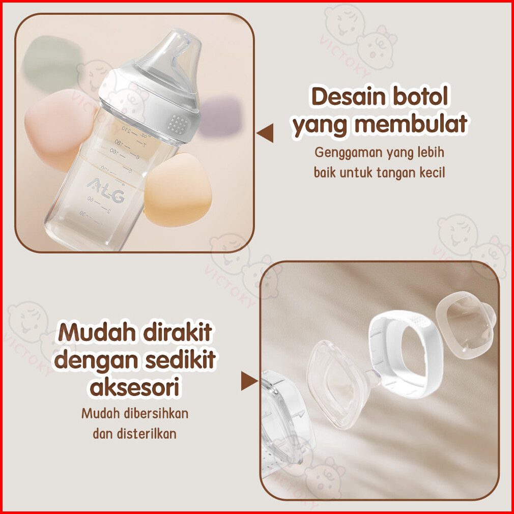 Victoky Botol Dot Susu Bayi Ppsu Anti Kolik Square Feeding Bottle 240ml Bpa Free