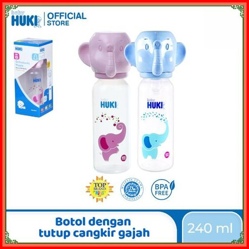 Baby Huki Orthodontic Nipple Round Pp Bottle Elephant Cap - Huki Botol Susu Gajah 240 Ml Botol Susu Dengan Tutup Botol B