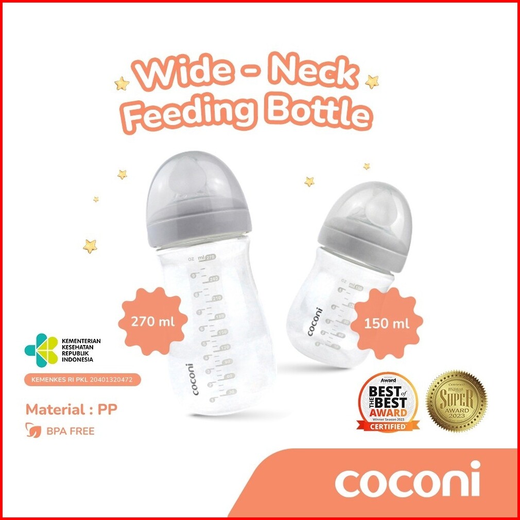 Coconi Wide-neck Feeding Baby Bottle 150ml 270ml Botol Susu Bayi Anti-colic Coconi Wide-neck Baby Bottle Nipple Teat Rep