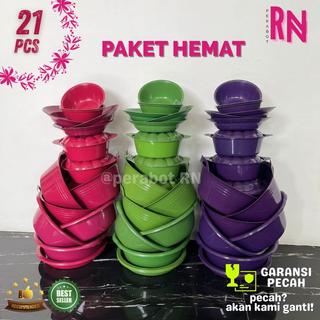 [21 Pcs] Paket Lengkap Peralatan Rumah Tangga /Set Dapur Plastik /Baskom /Bak Kuping / Nampan /Basi Sayur /Piring /Mangk