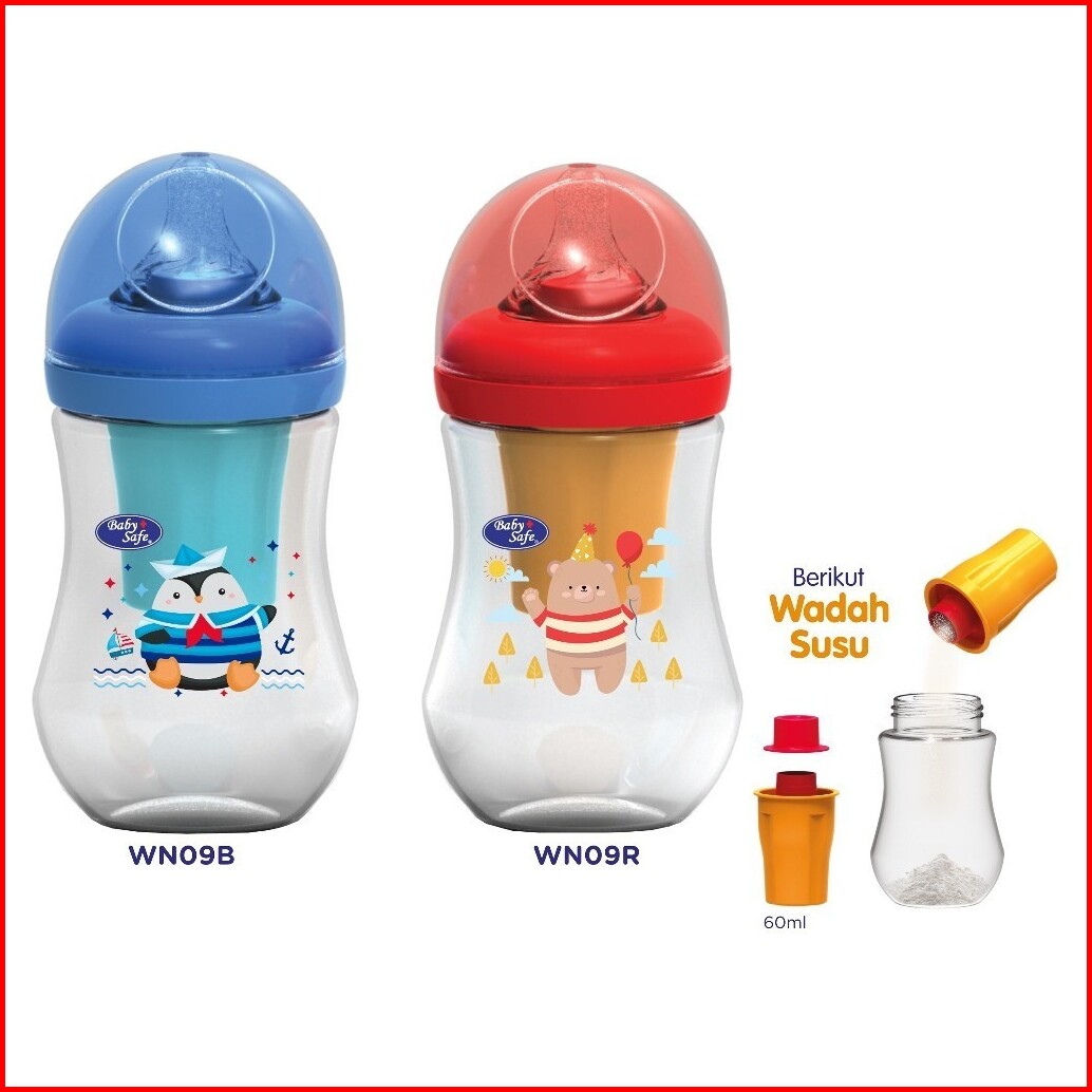 Babysafe - Wn09 - Botol Susu Wide Neck 2in1 260 Ml Botol Susu Dan Wadah Penyimpanan Susu