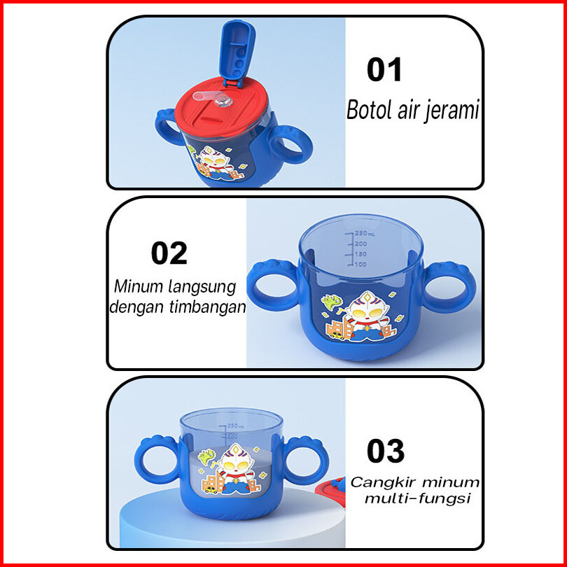 New 3 Warna Botol Air Minum Anak Bayi 280ml Gelas Minum Anak Anti Tumpah Bahan Jerami Anak Balita Training Cup