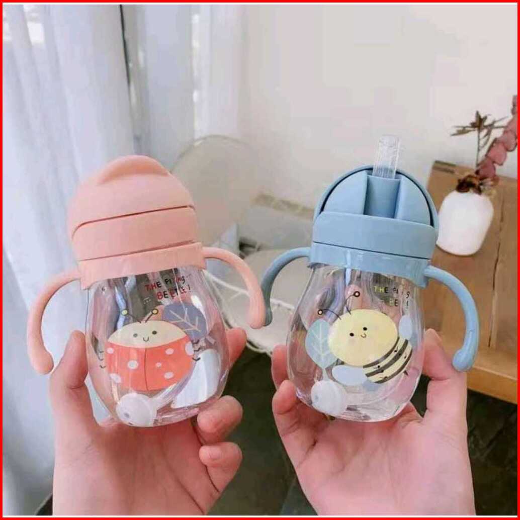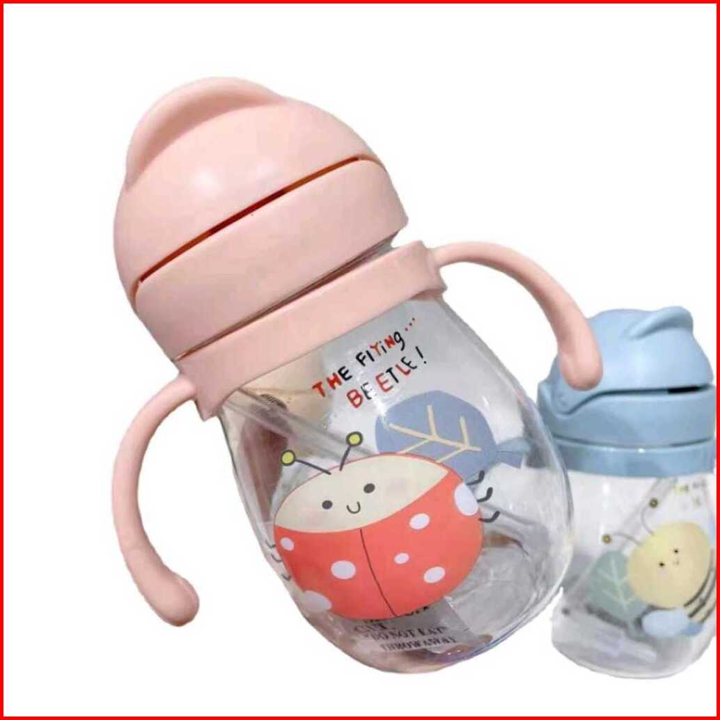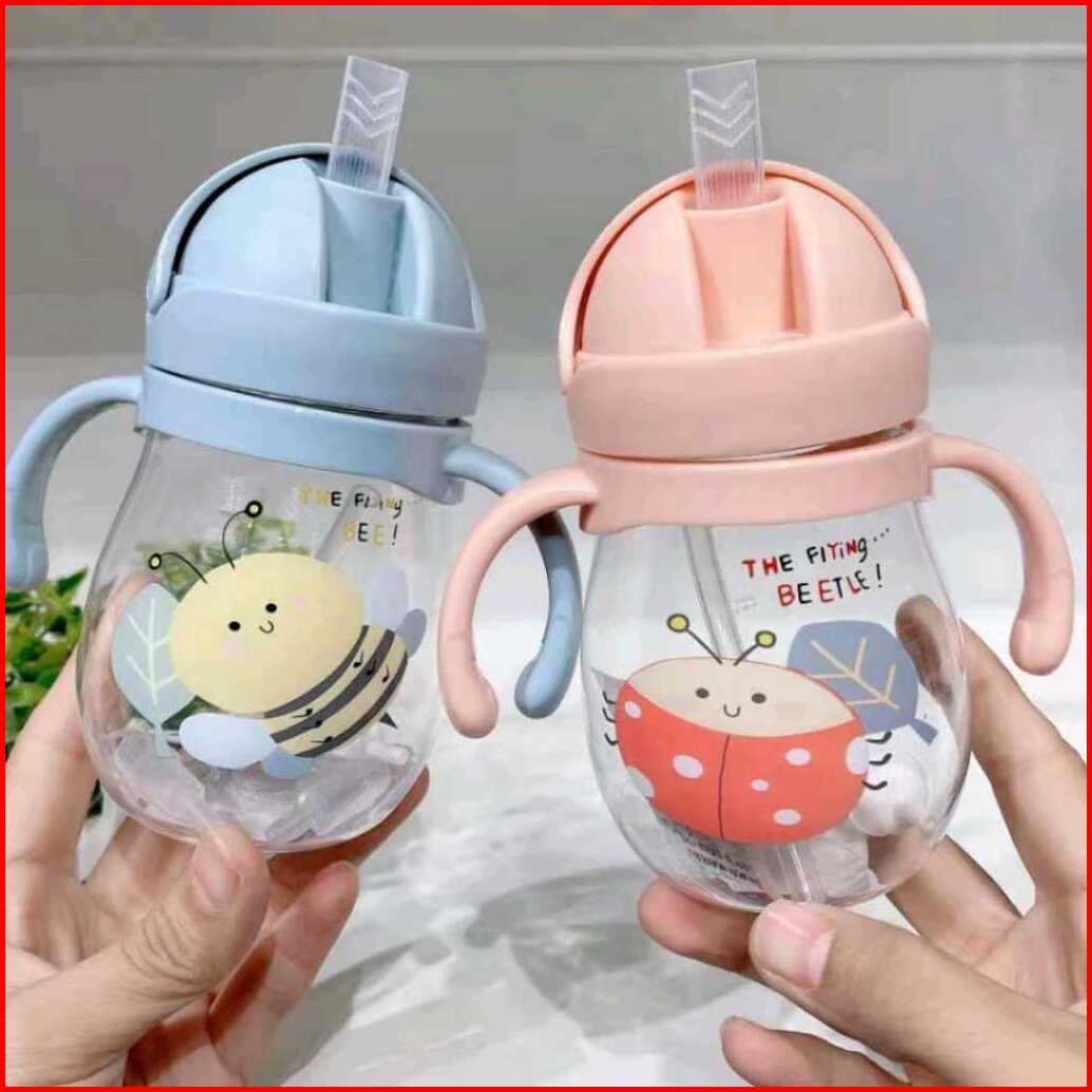 Botol Jerami Anak Botol Minum Anak Tutup Clip Import Botol Kartun 300ml
