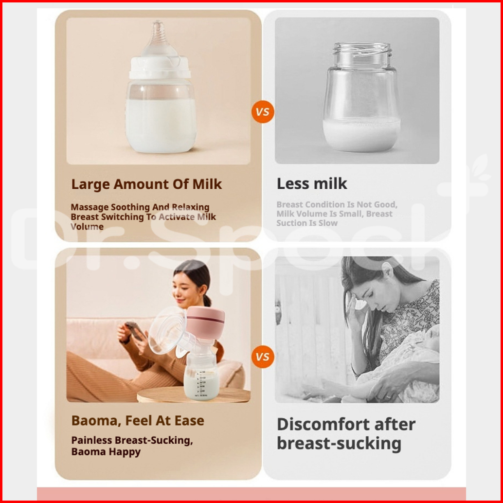 Dr.spock Pompa Asi Electric Tanpa Kabel Otomatis Portabel Pompa Asi Asi Bayi Baru Lahir Hisap Kuat Breast Pump Eb06a