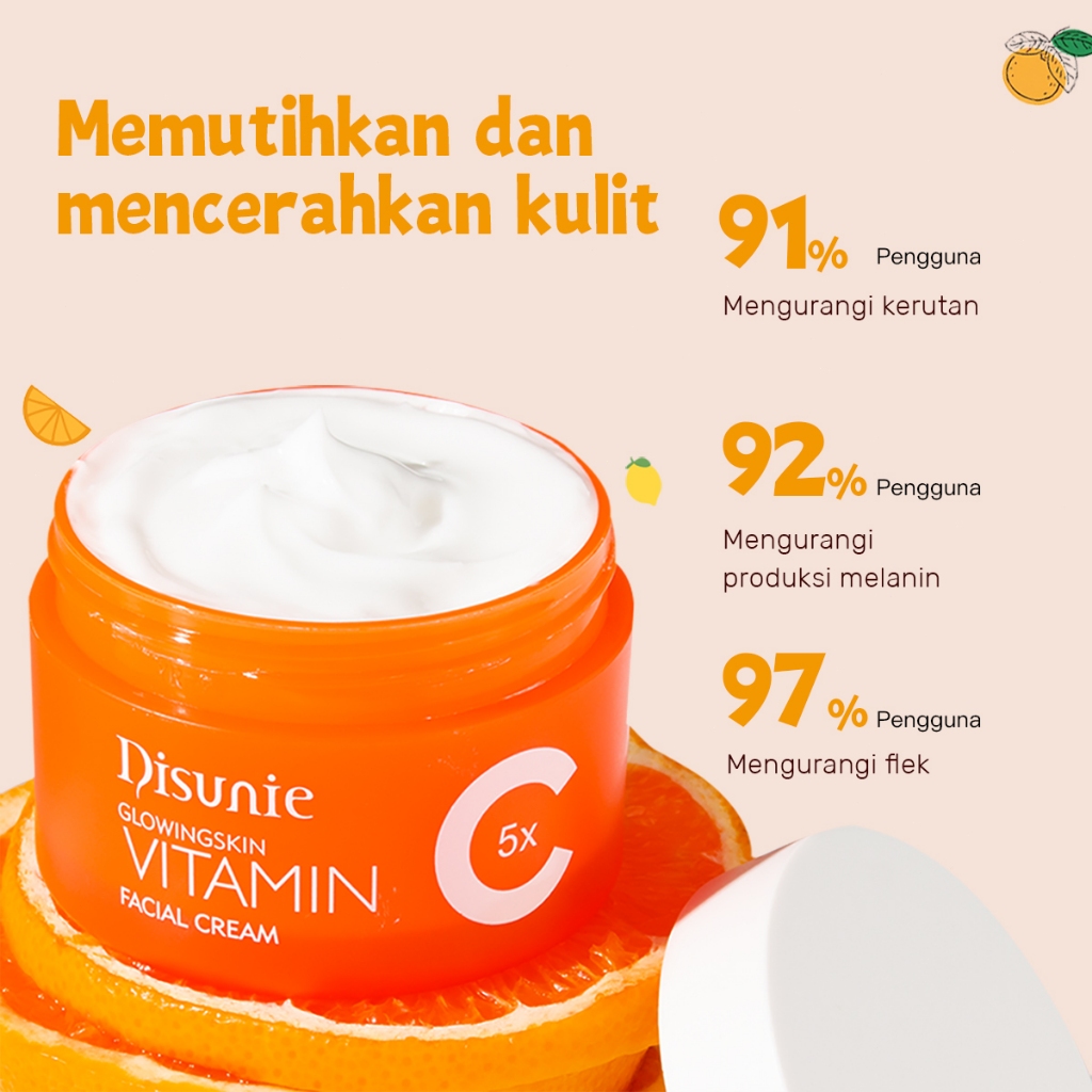 Disunie 5X Vitamin C Whitening Cream Glowing Skin “Non-Comedogenic Facial Moisturizer Meratakan Warna Kulit Cream 24H Gl